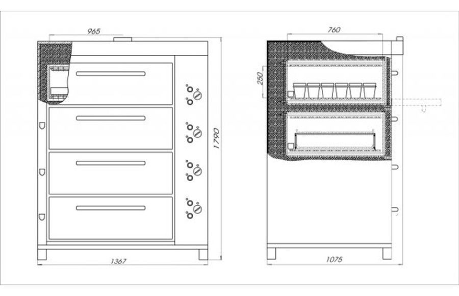 Производительность:96 форм №7 или 56 батонов 0,3 кг