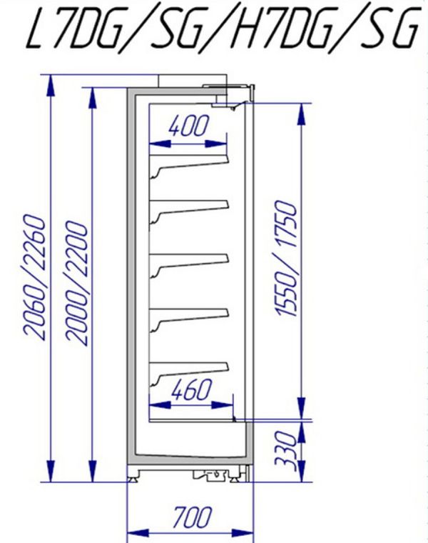 Стандартная комплектация охлаждаемого стеллажа Rimini с фронтальным остеклением (базовый):