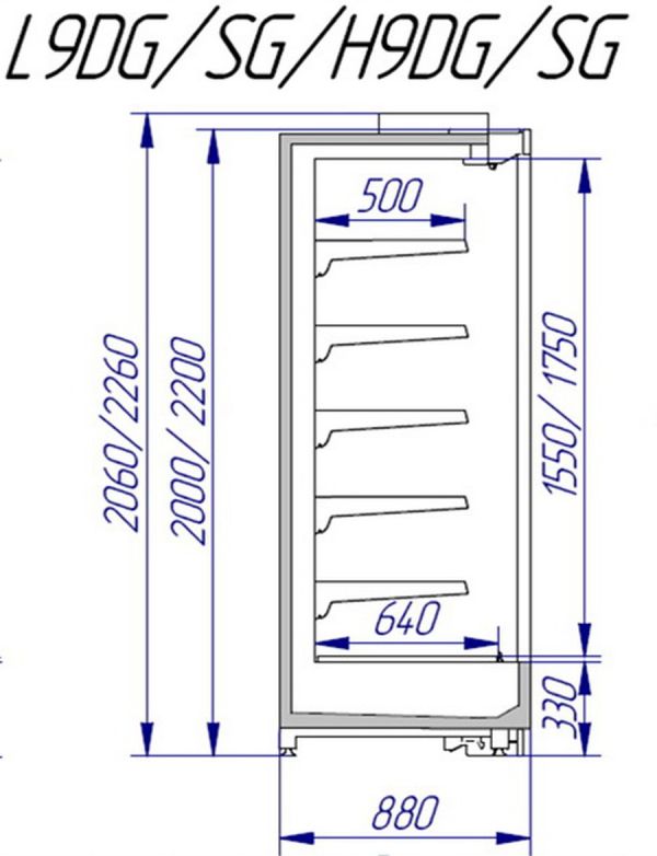 Стандартная комплектация охлаждаемого стеллажа Rimini с фронтальным остеклением (базовый):