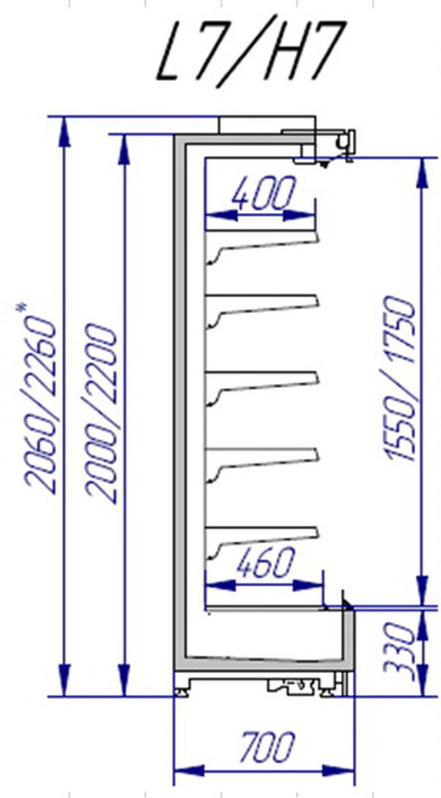 Глубина выкладки:400 мм / 460 мм