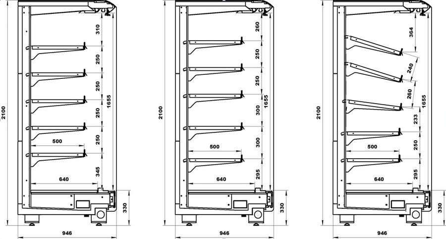 Стандартная комплектация гастрономической холодильной горки Варшава 210/94: