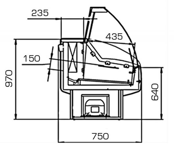 Холодильная витрина Ангара-75-1,5 (-5…+5°С, с подтоварником)