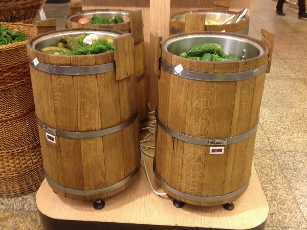 "Бочка" - открытая среднетемпературная витрина в виде бочки с крышкой, предназначенная для экспозиции и продажи овощных солений. С целью поддержания оптимальных климатических условий в помещении необходимо предусмотреть кондиционирование воздуха. В комплект входят энергосберегающая крышка, руководство по эксплуатации. Крышка может находиться как в открытом, так и в закрытом положении. Индикатор температуры - плюс 1000 р. к стоимости витрины.