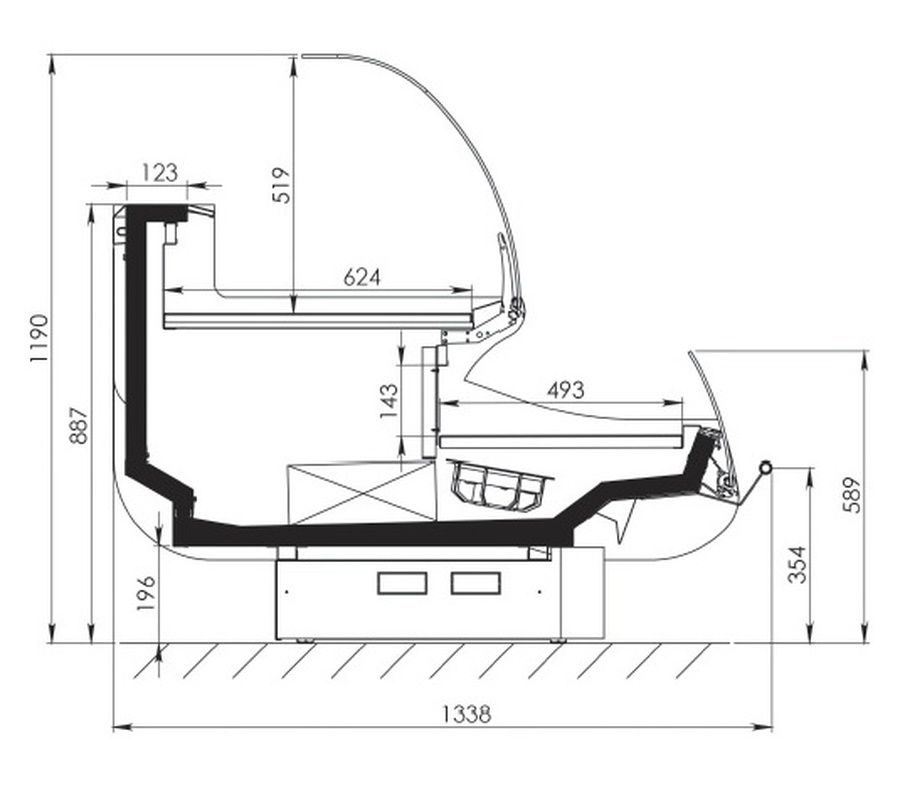 Глубина выкладки:624 мм / 493 мм