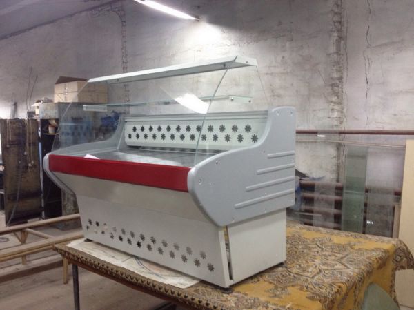 Среднетемпературная холодильная витрина Иней 3 СТ1340 эконом-класса со встроенным агрегатом. Габариты: 1340х810х1265 мм. Глубина выкладки - 520 мм. Имеется запасник (подтоварник).