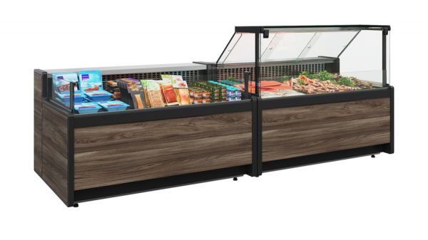 Холодильная витрина GC111 Bavaria 3 (динамика) с фиксируемым фронтальным стеклом. Варианты исполнения передней панели: ламинированный МДФ 1008 (темный дуб), 1010 (мариель). Стандартная комплектация: