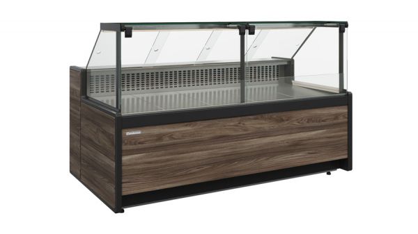 Холодильная витрина GC111 Bavaria 3 (динамика) с фиксируемым фронтальным стеклом. Варианты исполнения передней панели: ламинированный МДФ 1008 (темный дуб), 1010 (мариель). Стандартная комплектация: