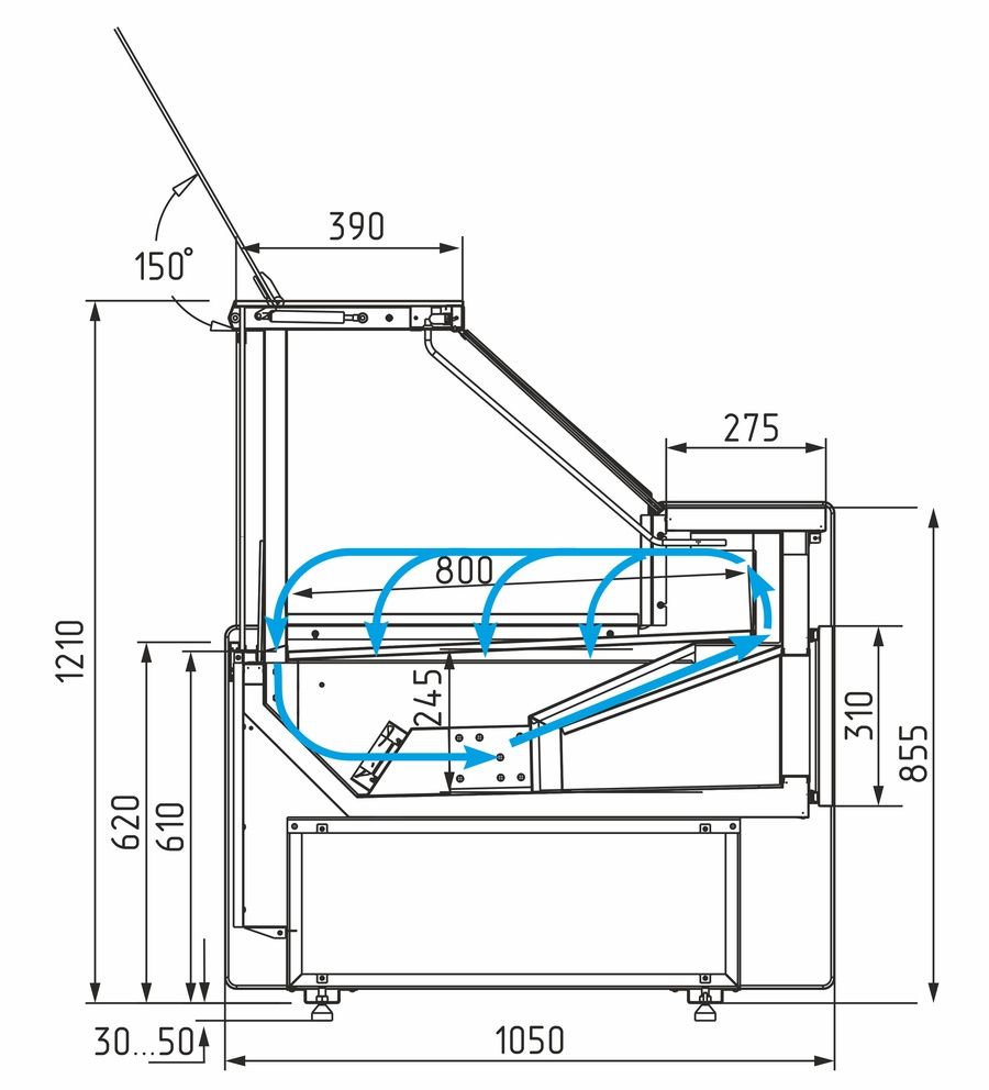 Холодильная витрина GC111 Bavaria 3 (динамика) с подъемным стеклом на газлифтах. Варианты исполнения передней панели: ламинированный МДФ 1008 (темный дуб), 1010 (мариель). Стандартная комплектация: