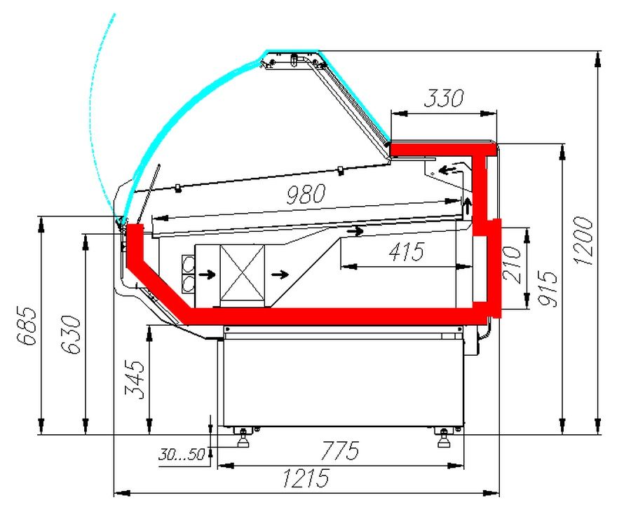 - экспозиционная поверхность и столешница из шлифованной нержавеющей стали
