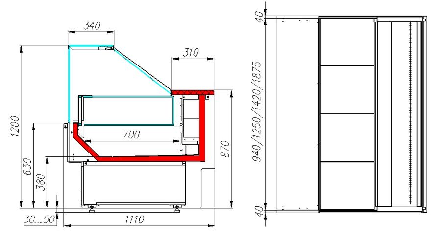 Стандартная комплектация холодильных витрин Bavaria 2 GC110 (стандартное исполнение):