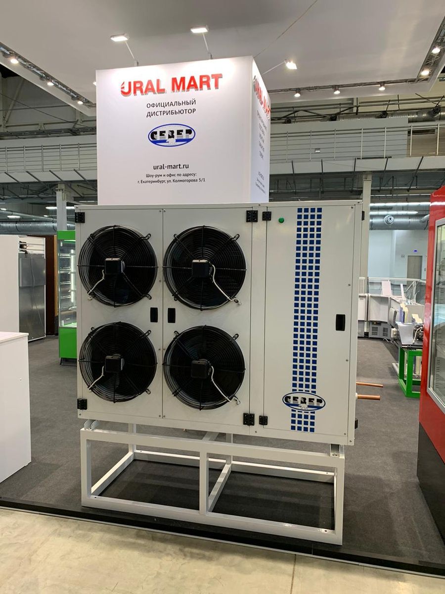 ККБ 4-го габарита на базе 6-полюсных вентиляторов. Среднетемпературный агрегат (при t исп -10ºС, t конд. +45ºС, перегрев 5К, переохл. 0К), на базе компрессора "Copeland".