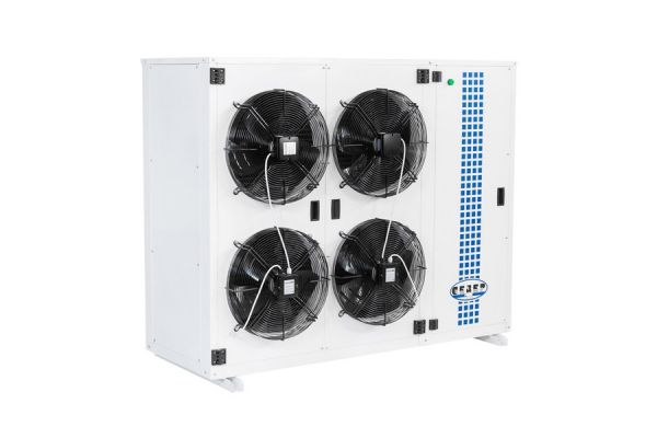 ККБ 4-го габарита на базе 6-полюсных вентиляторов. Среднетемпературный агрегат (при t исп -10ºС, t конд. +45ºС, перегрев 5К, переохл. 0К), на базе компрессора "Copeland".
