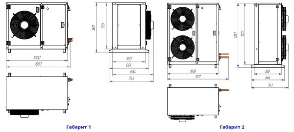 ККБ на базе 6-полюсных вентиляторов. Низкотемпературный агрегат (при t исп -30/-35ºС, t конд. +45ºС, перегрев 5К, переохл. 0К), на базе компрессора "Copeland". Дополнительные опции: