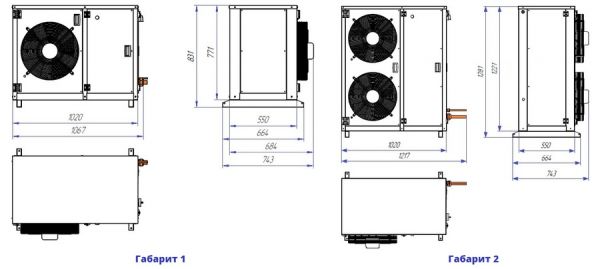 ККБ на базе 4-полюсных вентиляторов. Низкотемпературный агрегат (при t исп -30/-35ºС, t конд. +45ºС, перегрев 5К, переохл. 0К), на базе компрессора "Copeland". Дополнительные опции: