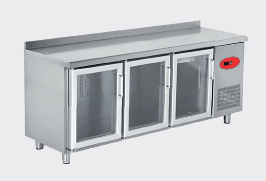 Регулируемые держатели полки из нержавеющей стали, внутренняя полка с пластиковым покрытием. Испаритель с алюминиевой панелью и медными трубами. Закругленная столешница, фиксированные на 45 градусов самозакрывающиеся двери. Полиуретановая изоляция толщиной 48 мм. Охлаждающий вентилятор. Съемный компрессор кондиционера. Автоматическое испарение воды при размораживании. Электронный дисплей контроля температуры и размораживания.