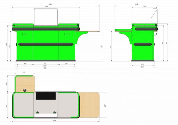 - Нержавеющая сталь 0,8 мм (рабочая поверхность, корпус сканера, накопитель, поверхность для выкладки товара).