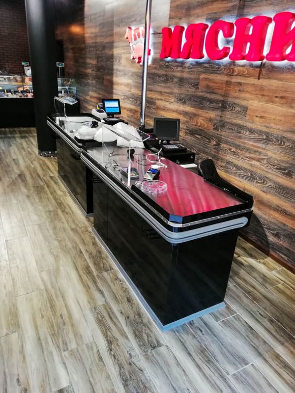 - Нержавеющая сталь 0,8 мм (рабочая поверхность, корпус сканера, накопитель, поверхность для выкладки товара).