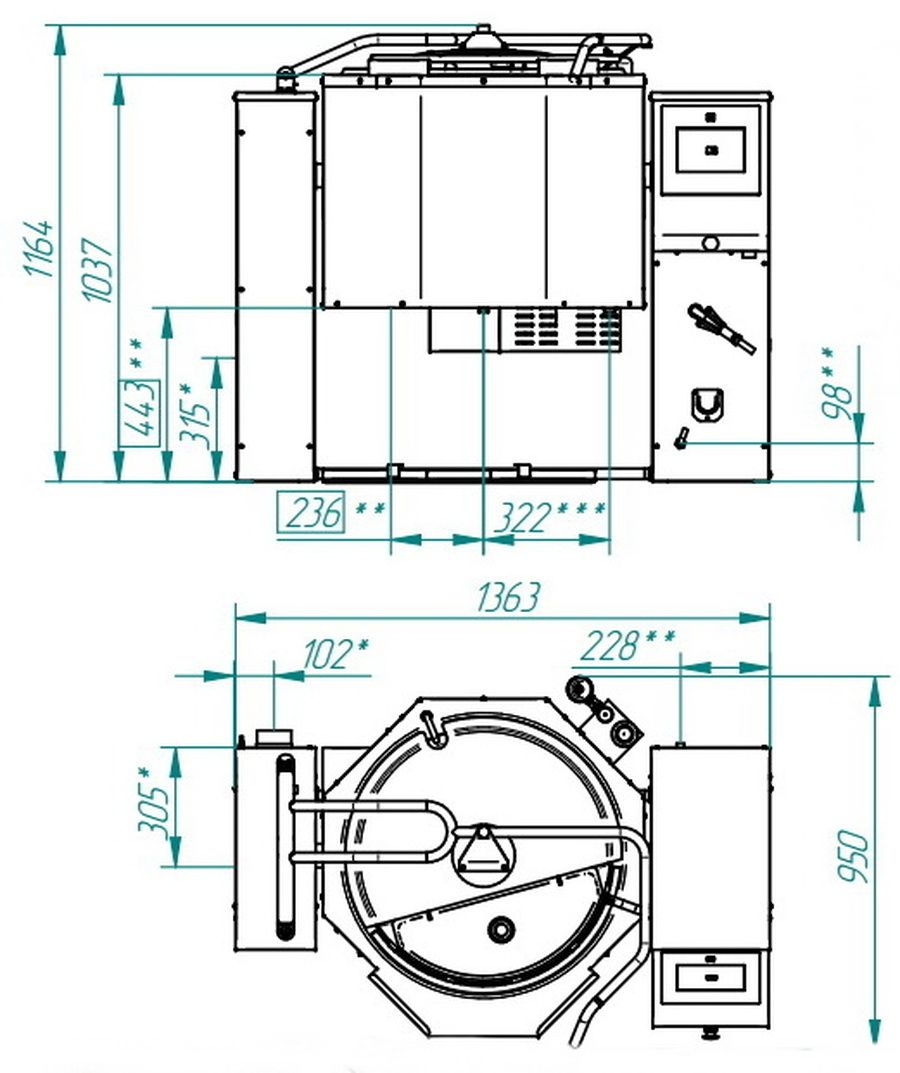 Котел пищеварочный опрокидывающийся Abat КПЭМ-100-ОМП с миксером