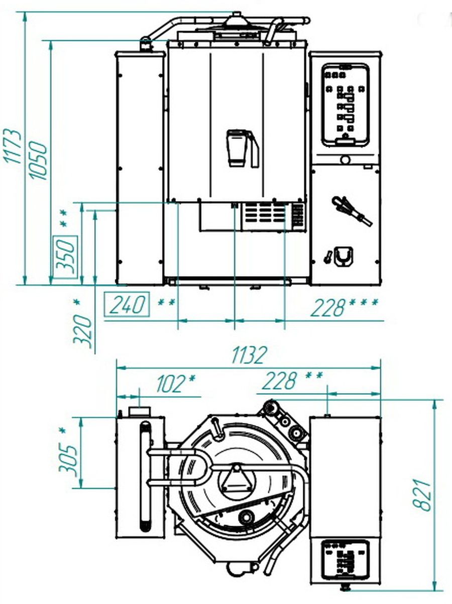 Котел пищеварочный опрокидывающийся Abat КПЭМ-60 ОМ2 с миксером и сливным краном