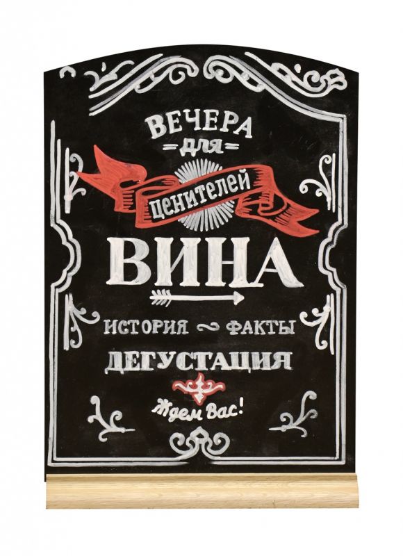 Меловая доска А5 на деревянной подставке с росписью