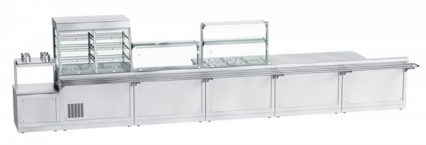 Линия раздачи HOT-LINE оснащена съемными панелями. Возможен выбор из 5 вариантов панелей: орех, дуб, вишня, красное золото или нержавеющая сталь. Исполнение по умолчанию: с панелями из нержавеющей стали. Панели легко снимаются и легко закрепляются на четырех декоративных винтах. Цоколи по нижнему краю линии раздачи закрывают просвет от пола до корпуса элементов, благодаря чему пыль не скапливается под изделиями. Направляющие без стыков - супы и напитки не прольются во время движения подноса. Со стороны покупателя находится гнутое стекло с противоосколочной пленкой. Дополнительные опции: поворотные колеса, торцевой комплект.