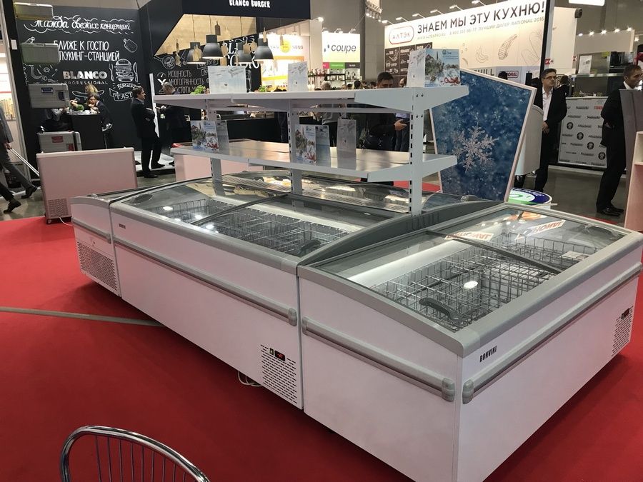 Для улучшения эффективности выкладки внутри бонеты BFG 2500 вы можете использовать проволочные разделители. Ряд сетчатых полок и корзин может трансформироваться, что обеспечивает функциональную гибкость охлаждаемого внутреннего объема и позволяет не только продавать товар, но и хранить его на нижнем ярусе. Отдельная опция - установка суперструктуры. В холодильной системе используется экологически безопасный хладагент R404A.