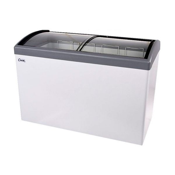 Морозильный ларь Снеж МЛГ-500 (габариты: 1400х600х800) со стеклянной гнутой раздвижной крышкой, с полезным объемом 396 литров, подходит для хранения и демонстрации замороженных продуктов в торговых точках, магазинах любого формата. В комплектацию морозильного ларя входит 5 корзин. Морозильные лари Снеж МЛГ отличаются современным дизайном и эргономичностью. Возможен самовывоз с нашего склада, а также доставка до терминала транспортной компании или до вашего адреса. Гарантия на оборудование от производителя - 1 год. Возможно брендирование ларя под заказ - стоимость опции рассчитывается отдельно и в указанную стоимость не входит.