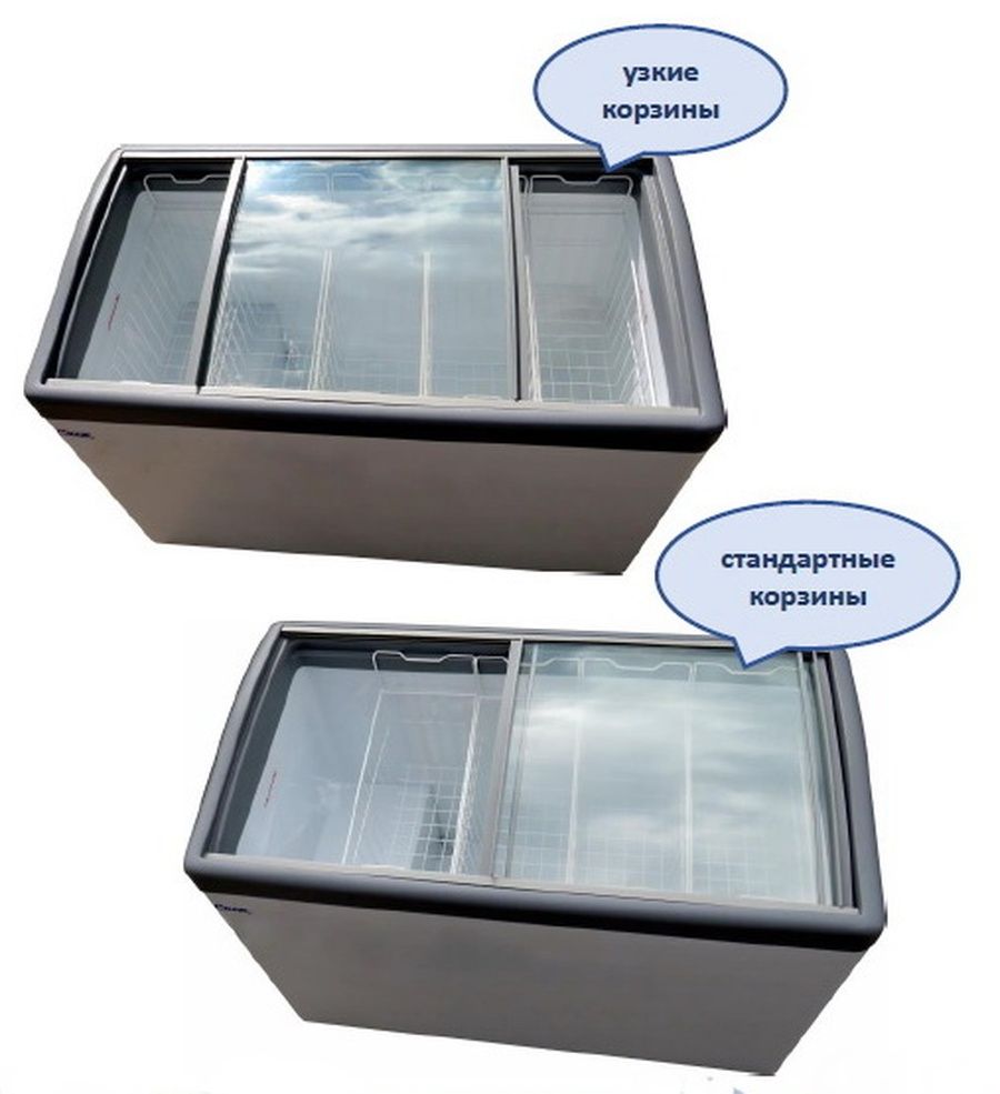 С июня 2018 года лари серий МЛП / МЛГ комплектуются узкими корзинами - для более эффективного использования внутреннего охлаждаемого объема. С 2018 года лари выпускаются без замка, встроенного в стекло. По запросу клиента возможно изготовление с замком без увеличения стоимости ларя.