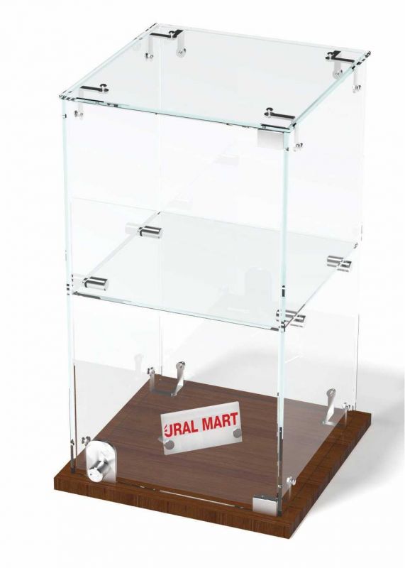 Материал основания - ламинированная ДСП (толщина - 16 мм). Кромка из ПВХ имеет толщину 0,5 мм. Есть возможность выбрать расцветку основания. Витрина может быть изготовлена по индивидуальным размерам.