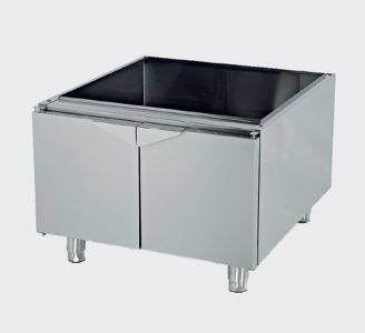 Подставка с дверью. Корпус из нержавеющей стали, легко чистится, поверхности сделаны в соответствующих модульных размерах.