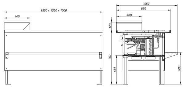 Прилавок холодильный среднетемпературный «Мясной» ПХС-1,25/0,85 (под выносное холодоснабжение с креплением для перекладины)