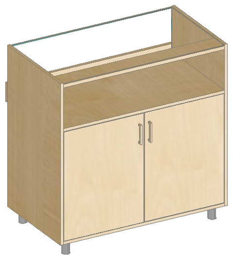 Материалы: ДСП ламинированная, клеёное стекло. Кромка толщиной 2 мм из ПВХ, цвет по выбору. Дополнительно можно приобрести следующие комплектующие для прилавка ПДЭ-90.25: