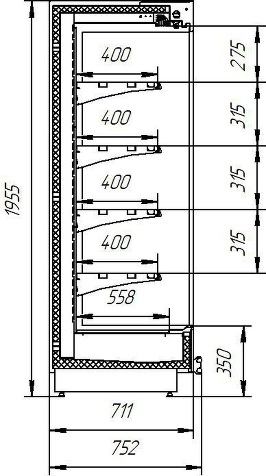 Глубина выкладки:400 / 558 мм