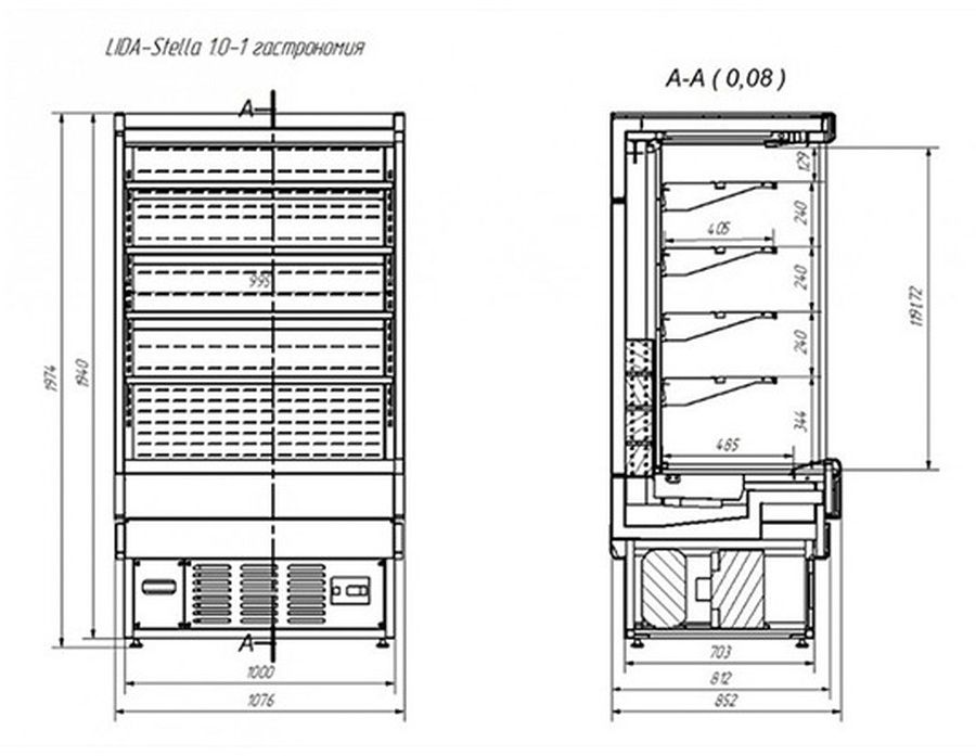 Дополнительные опции для горки Lida STELLA: ночные шторки, делители (полнопрофильный, неполнопрофильный), доп. подсветка, глухая боковина с зеркалом, зеркальный стеклопакет для боковин, ограничители для полок, крюки и штанги для колбас. Стоимость опций уточняйте у наших менеджеров.