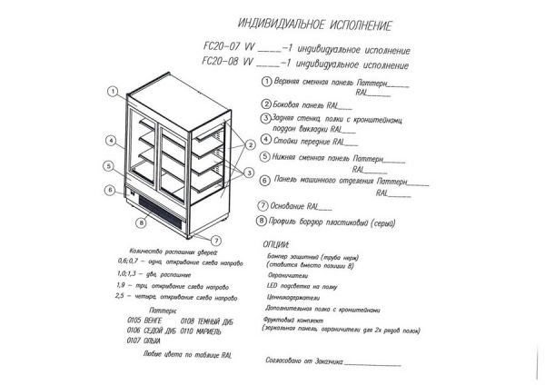 - фруктовый комплект (зеркальная панель, ограничитель для двух рядов полок)