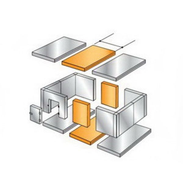 Расширительный пояс для холодильной камеры "Ариада" высотой 2240 мм, с типом соединения "шип-паз", толщина панелей 100 мм. Расширительный пояс состоит из 1 потолочной, 1 панели для пола и 2 стеновых панелей (L=2040 мм).
