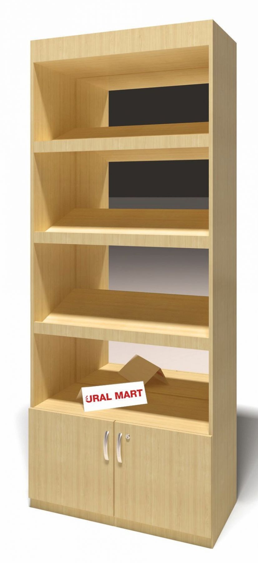 Материал наклонных полок – ДСП, задняя панель стеллажа представляет собой зеркало. Толщина кромки из ПВХ - 0,4 мм. Имеются накопитель для товара, дверки в накопителе оснащены замком.