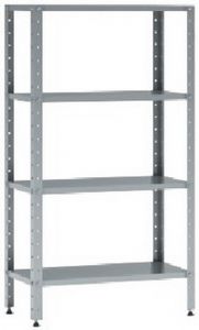 Полки и ножки с опорами регулируются по высоте. Полки усилены продольным ребром жесткости (крепится ко дну полки) для увеличения нагрузки. Конструкция разборная.
