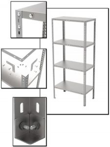 Стеллаж складской металлический серии Strong, конструкция сборно-разборная, с регулировкой полок по высоте. Стандартная комплектация: