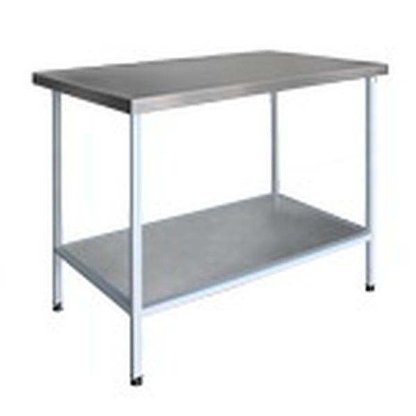 Каркас сварной или разборный. Варианты исполнений разделочного стола: с бортом или без борта; со сплошной полкой, перфорированной полкой, решеткой или обвязкой; с полкой нерж. стали, оцинкованной стали или окрашенной стали.