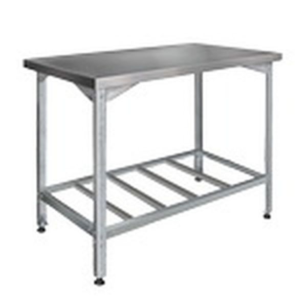 Варианты исполнений разделочного стола: с бортом или без борта; со сплошной полкой, перфорированной полкой, решеткой или обвязкой; с полкой нерж. стали, оцинкованной стали или окрашенной стали.