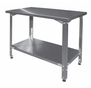 Варианты исполнений разделочного стола: с бортом или без борта; со сплошной полкой, перфорированной полкой, решеткой или обвязкой; с полкой нерж. стали, оцинкованной стали или окрашенной стали.