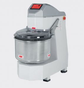 Два двигателя. Тестомесильная насадка и чаша из нержавеющей стали, цифровая панель управления с таймером. Размер чаши: 500 мм (диаметр), 300 мм (высота).