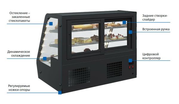 - 2 полки-решетки с ограничителями, с возможностью установки под углом 5 градусов
